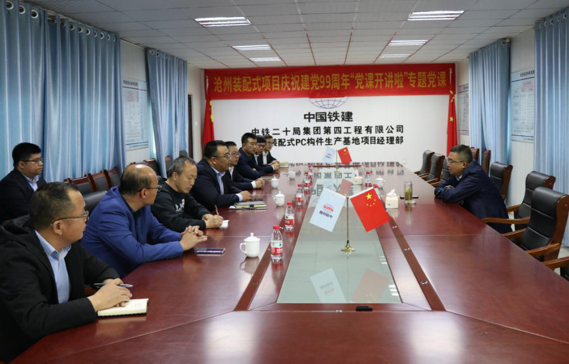 10月25日,中鐵二十局四公司總經理張林到河北中鐵滄鹽建筑科技有限公司裝配式PC構件生產基地項目調研指導工作,河北中鐵滄鹽建筑科技有限公司副董事長王峰偉、總經理王志巖及相關領導陪同調研。